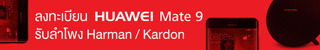 ซื้อ Huawei Mate 9 Series กับ ทรูมูฟ เอช ฟรี! ลำโพง Harman Kardon มูลค่า 8,990.- พร้อมผ่อน 0% นาน 18 เดือน
