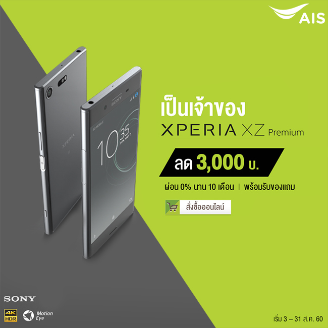 เป็นเจ้าของ Sony Xperia XZ Premium กับ เอไอเอส รับส่วนลดทันที 3,000 บาท พร้อมของแถมสุดพิเศษ