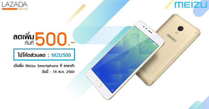 MEIZU ลดราคาสมาร์ทโฟนสูงสุด 24% พร้อมส่วนลดพิเศษเพิ่ม 500 บาท ที่ ลาซาด้า