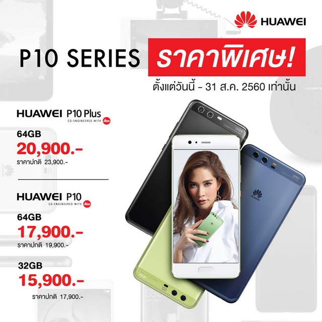 สำหรับราคาของ Huawei P10 Plus ในประเทศไทย ขณะนี้อยู่ที่ 20,900 บาท (ปรับราคาลดลงมาจากราคาเปิดตัว 23,900 บาท) ใครที่สนใจสมาร์ทโฟนรุ่นนี้อยู่ หัวเหว่ย ประเทศไทย กำลังจัดโปรโมชั่น Huawei Grand Sale สามารถผ่อน 0% นานสูงสุด 18 เดือน พร้อมเครดิตเงินคืนสูงสุด 1,200.- เมื่อซื้อผ่านบัตรเครดิตที่ร่วมรายการ (ระยะโปรโมชั่นถึงวันที่ 31 ส.ค. 2560)