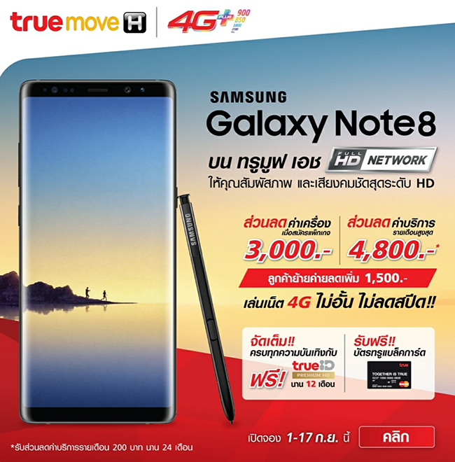 นอกจาก ซัมซุง ประเทศไทย จะมีเปิดจอง Samsung Galaxy Note 8 แล้ว ทางผู้ให้บริการเครือข่ายจาก 3 ค่ายหลักของประเทศไทย ทั้ง เอไอเอส, ดีแทค และทรูมูฟ เอช ได้เปิดให้ผู้ที่สนใจจอง Samsung Galaxy Note 8 พร้อมกับข้อเสนอสุดพิเศษอีกมากมาย โดยจะเปิดรับจองในวันที่ 1 - 17 กันยายนนี้เช่นเดียวกัน สำหรับในส่วนของราคาเปิดตัวของ Samsung Galaxy Note 8 นั้นจะอยู่ที่ 33,900 บาท