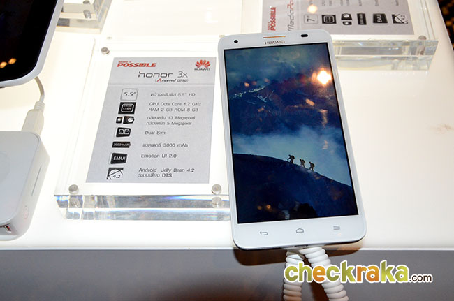 Huawei Honor 3X (G750) มาพร้อมหน้าจอ HD IPS ขนาด 5.5 นิ้ว ที่ช่วยให้ภาพคมชัดยิ่งขึ้นแม้ในที่ที่มีแสงสว่างมาก ทั้งยังมีระบบป้องกันการสั่นของภาพ พร้อมเปิดประสบการณ์ใหม่ของกล้องบนสมาร์ทโฟนด้วยกล้องด้านหน้าและด้านหลังที่สามารถถ่ายภาพพาโนรามาได้ กล้องหลังขนาด 13 ล้านพิกเซล Sony BSI พร้อม Blue Wave Filter Glass F 2.2 ส่วนกล้องหน้าขนาด 5 ล้านพิกเซล ขนาดเลนส์ 22 มิลลิเมตร F 2.2 สามารถปรับความคมชัดของใบหน้า และความสมดุลของแสงได้อัตโนมัติ