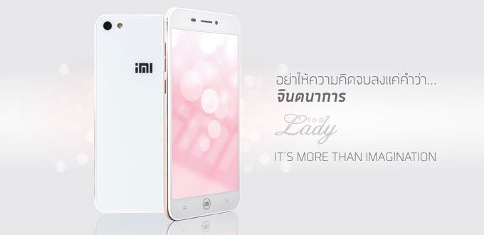 สมาร์ทโฟน iMI Lady Top พร้อมวางจำหน่ายในประเทศไทยแล้ววันนี้ที่ตัวแทนจำหน่ายทั่วประเทศ ในราคาเพียง 5,990 บาท (รวมภาษีแล้ว)
