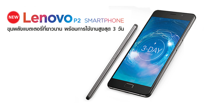 Lenovo P2 เพิ่มขุมพลังแบตเตอรี่ที่ยาวนาน รองรับการใช้งานสูงสุดถึง 3 วัน