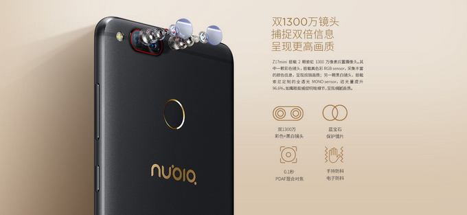 Nubia Z17 mini สมาร์ทโฟนกล้องคู่ 13 ล้านพิกเซล กล้องหน้า 16 ล้านพิกเซล