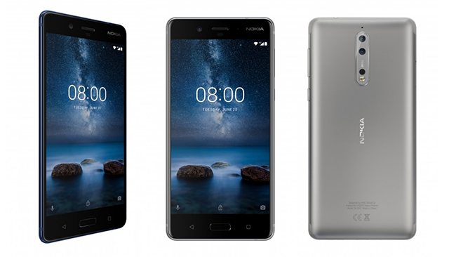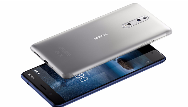 Nokia 8 มีดีไซน์โลหะขัดเงาดูงดงามมาก (Aluminum 6000) รองรับ 4G LTE หน้าจอ IPS ขนาด 5.3 นิ้ว ความละเอียด QHD กระจก Corning Gorilla Glass 5, ทำงานบน Android 7.1.1 Nougat, ชิปเซ็ต Snapdragon 835, GPU Adreno 540, RAM 4GB และหน่วยความจำ 64GB (Tempered Blue, Steel, Polished Copper) และมีรุ่น RAM 6GB, หน่วยความจำ 128GB (Polished Blue) ให้เลือกซื้อด้วย ทั้ง 2 รุ่นย่อยรองรับ MicroSD