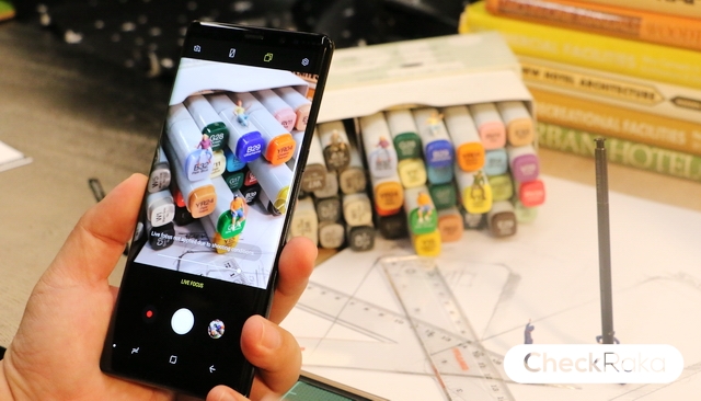 สำหรับรุ่นนี้ กล้องเป็นพระเอกของ Samsung Galaxy Note 8 เลยครับ มาพร้อมกล้องคู่ Dual Camera ประกอบด้วยเลนส์มุมกว้าง (Wide-Angle Lens) ขนาดเซ็นเซอร์ 1/2.55 นิ้ว ช่วงเลนส์ 26 มม. และเลนส์เทเลโฟโต้ (Telephoto Lens) ขนาดเซนเซอร์ 1/3.6 นิ้ว ช่วงเลนส์ 52 มม. ความละเอียด 12MP ค่ารูรับแสง F1.7 + 12MP ค่ารูรับแสง F2.4 รองรับ Optical Zoom 2X ซึ่งมาพร้อมฟีเจอร์ Live Focus สามารถปรับเอฟเฟกต์โบเก้ได้ตามใจชอบ และสามารถเก็บภาพพร้อมกัน และบันทึกไว้ทั้งสองภาพภายในช็อตเดียว โดยจะได้ทั้งภาพแบบมุมกว้าง และแบบเทเลพร้อมๆ กัน ใช้งานง่าย และยอดเยี่ยมมากๆ โบเก้ดูเป็นธรรมชาติอย่างที่ไม่เคยมีมาก่อนเลยสำหรับสมาร์ทโฟนกล้องคู่ในตอนนี้ ส่วนกล้องหน้าความละเอียด 8MP ค่ารูรับแสง F1.7 ขนาดเซ็นเซอร์ 1/3.6 นิ้ว