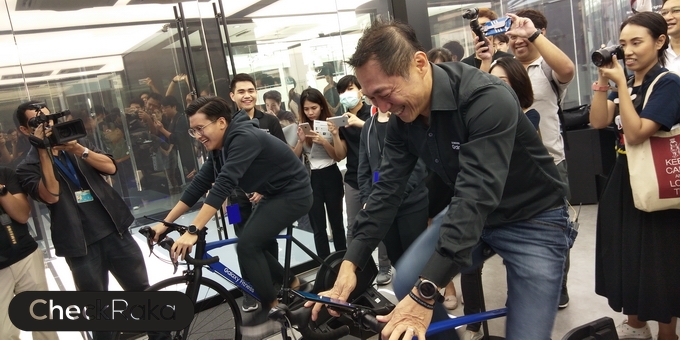 Galaxy Fitness กิจกรรมแข่งปั่นจักกรยาน โดยสาวมใส่ Gear Fit 2 Pro เพื่อวัดอัตราการเต้นของหัวใจ และนับจำนวนแคลเลอรี่ที่เผาผลาญแบบเรียลไทม์