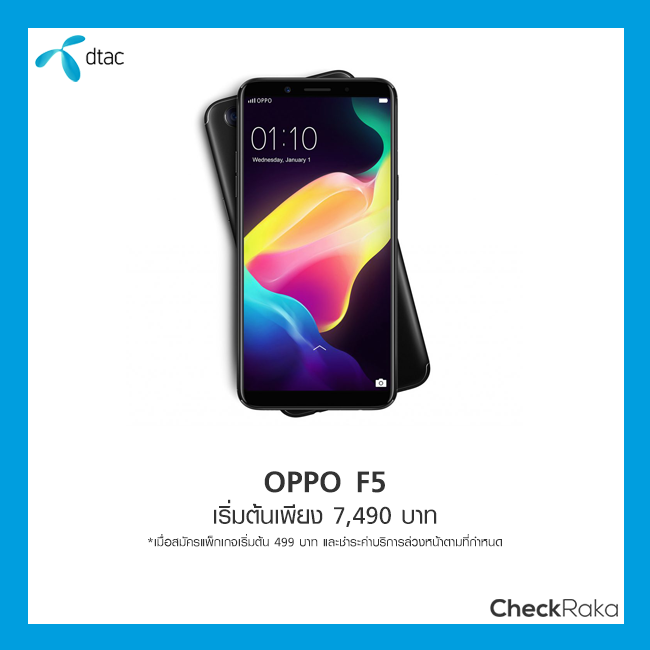 - OPPO F5 เริ่มต้นเพียง 7,490 บาท (จากปกติ 9,990 บาท)