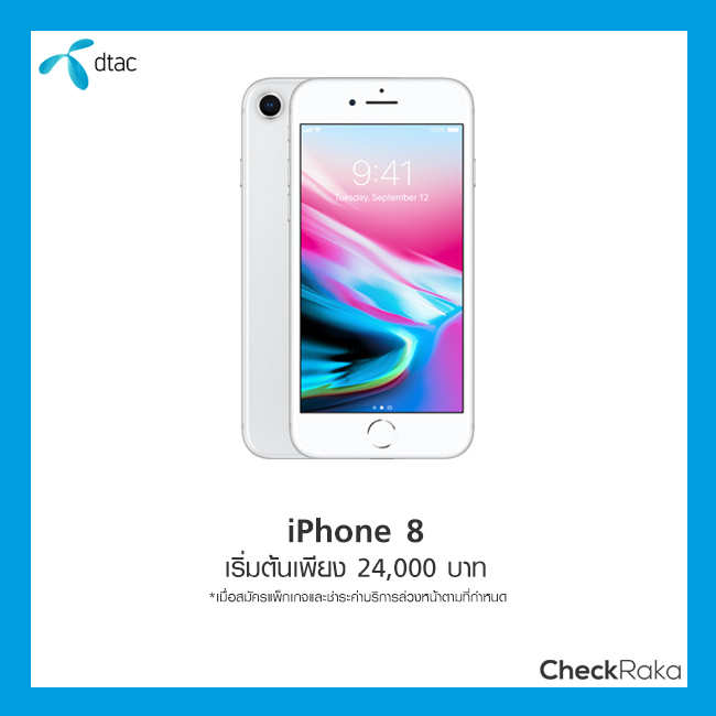 เมื่อสมัครแพ็กเกจและชำระค่าบริการล่วงหน้าตามที่กำหนด - iPhone 8 Plus (64GB) เริ่มต้นเพียง 28,000 บาท (จากปกติ 33,000 บาท)