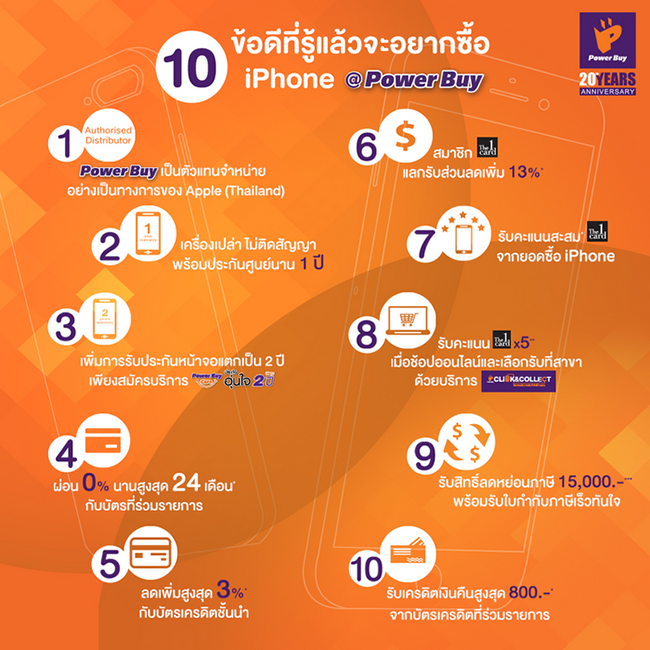 - รับคะแนนสะสม The 1 Card จากยอดซื้อไอโฟน