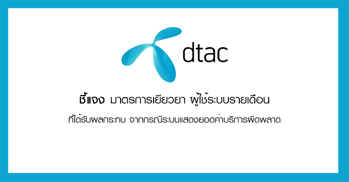 dtac ชี้แจง มาตรการเยียวยา ผู้ใช้ระบบรายเดือน ที่ได้รับผลกระทบ จากกรณีระบบแสดงยอดค่าบริการผิดพลาด