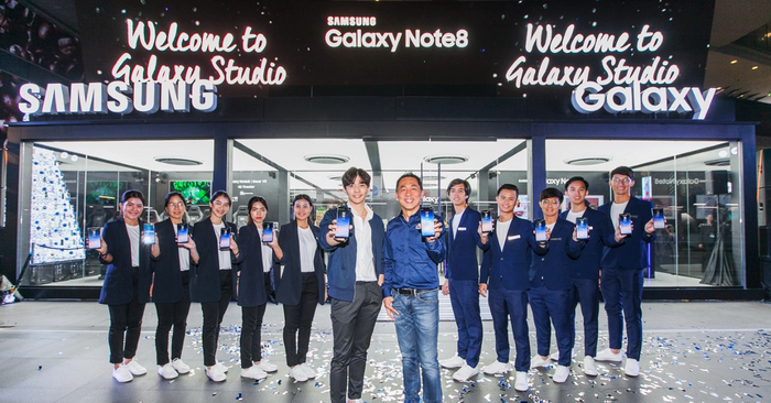 นายวิชัย พรพระตั้ง รองประธานองค์กร ธุรกิจโทรคมนาคมและไอที บริษัท ไทยซัมซุง อิเลคโทรนิคส์ จำกัด กล่าวว่า Samsung Galaxy Note 8 ไม่ได้เป็นแค่โทรศัพท์มือถือ แต่คือความสุขที่ซัมซุงอยากส่งต่อให้ทุกคนได้สัมผัส วันนี้ซัมซุงได้ยกนวัตกรรมที่ดีที่สุดในขณะนี้มารวมไว้ที่ Samsung Galaxy Studio ในรูปแบบ ความสุขส่งต่อกันได้ ต้อนรับเดือนแห่งความสุขในสตูดิโอแห่งนี้ที่มีทุกนวัตกรรมแห่งความสุข รอแค่คุณมาสัมผัสด้วยตัวเองแล้วร่วมส่งต่อให้คนรอบข้าง ซัมซุงเชื่อว่าความสุขสามารถส่งต่อกันได้ นอกจากนี้ ซัมซุงได้จัดทำต้นคริสต์มาสที่ประดับด้วยผลิตภัณฑ์ซัมซุงทั้งหมด เป็นครั้งแรกในประเทศไทย นับเป็นการนำเทคโนโลยีและการส่งต่อความสุข มาผสมผสานกันได้อย่างลงตัว