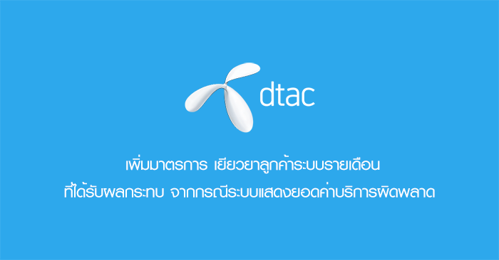 dtac เพิ่มมาตรการเยียวยาลูกค้าระบบรายเดือนที่ได้รับผลกระทบ จากกรณีระบบแสดงยอดค่าบริการผิดพลาด