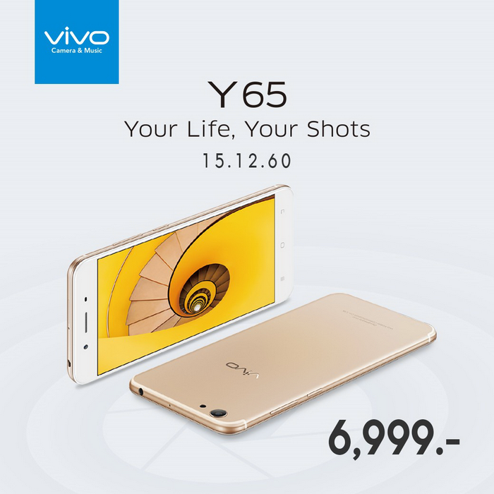Vivo Y65 สมาร์ทโฟนรุ่นใหม่กับสโลแกน Your Life , Your Shots ออกแบบให้ทุกมุมมองสะท้อนสไตล์ที่เรียบหรู ตัวเครื่องบางเพียง 7.5 มิลลิเมตร หรูหราด้วยดีไซน์ขอบโค้ง จับถนัด สัมผัสสบายมือ ให้ความรู้สึกเรียบเนียน สวยหรูเหมือนรุ่นใหญ่