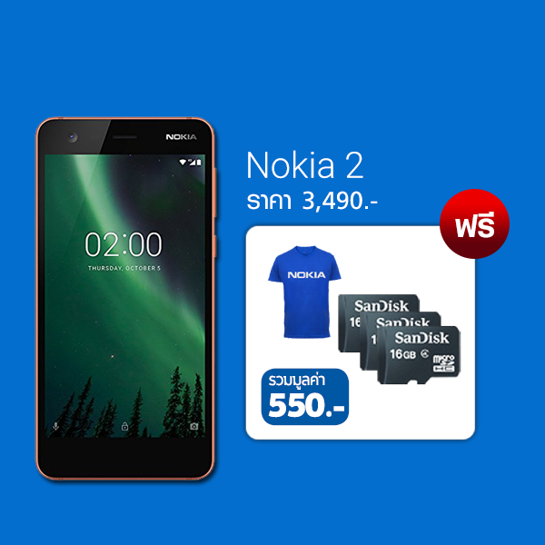 Nokia 2รับฟรี เสื้อยืด เมมโมรี่การ์ด รวมมูลค่า 550.-