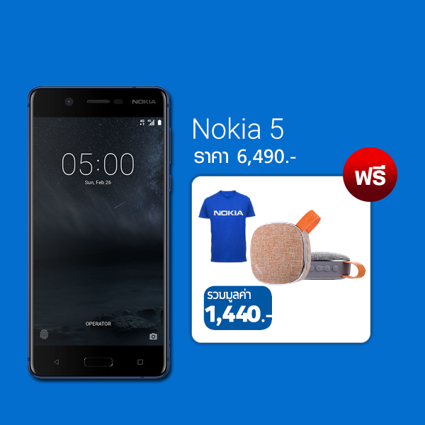 Nokia 5 รับฟรี เสื้อยืด ลำโพง รวมมูลค่า 1440.-