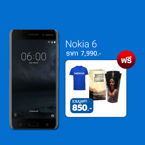 Nokia 6 รับฟรีเสื้อยืด แก้วน้ำ รวมมูลค่า 850.-