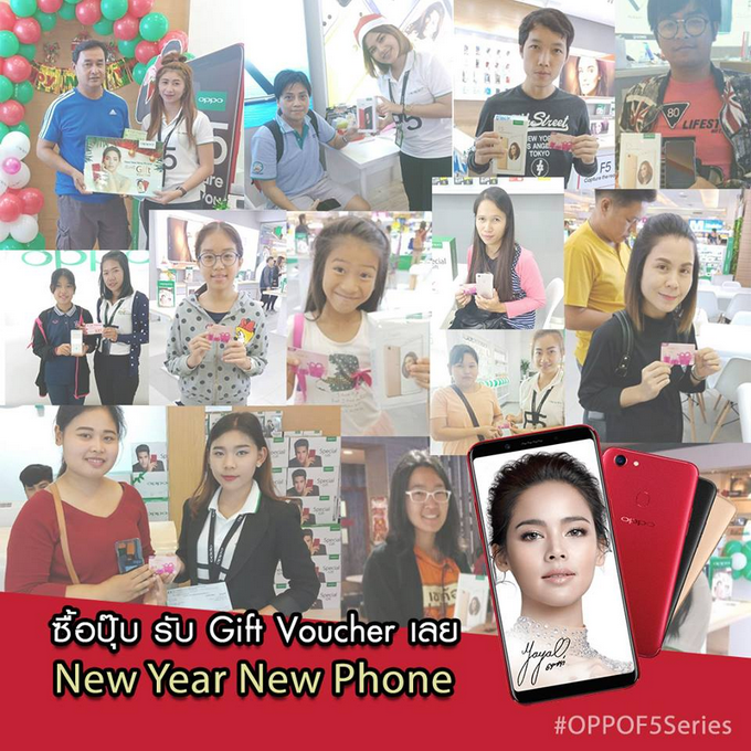 ใกล้สิ้นปีแบบนี้ สำหรับใครที่กำลังมองหาของขวัญสุดพิเศษหรือมีแพลนจะเปลี่ยนโทรศัพท์เครื่องใหม่ ออปโป้ ก็กลับมาอีกครั้งกับกิจกรรมดีๆ ให้คุณลูกค้าคนสำคัญทุกท่านกับ "OPPO New Year New Phone" ขอมอบบัตรของขวัญใช้แทนเงินสดมูลค่าสูงสุดกว่า 500 บาท ง่ายๆ เพียงซื้อสมาร์ทโฟนในรุ่น OPPO F5 Series ตั้งแต่วันที่ 23 ธันวาคม 2560 - 7 มกราคม 2561 ก็มีสิทธิ์จับบัตรของขวัญใช้แทนเงินสดกันไปเลย (เฉพาะร้านที่ร่วมรายการ)- OPPO F5 ราคาปกติ 9,990 บาท