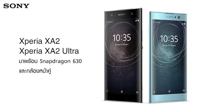 Sony Xperia XA2 และ Sony Xperia XA2 Ultra มาพร้อม Snapdragon 630 และกล้องหน้าคู่