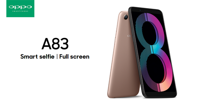 OPPO A83 มาพร้อมดีไซน์พลาสติกไร้รอยต่อ Unibody หน้าจอ IPS ขนาด 5.7 นิ้ว ความละเอียด HD+, ทำงานบน Android 7.1 Nougat ครอบทับด้วย ColorOS 3.2, ชิปเซ็ต Mediatek MT6763T Helio P23, CPU Octa-core 2.5 GHz Cortex-A53, GPU Mali-G71 MP2, RAM 3GB, ROM 32GB รองรับ MicroSD, เซนเซอร์ Accelerometer, proximity, compass, Wi-Fi 802.11 a/b/g/n, Bluetooth 4.2, GPS, กล้องความละเอียด 13MP F2.2 และกล้องหน้าความละเอียด 8MP F2.2 มาพร้อม AI beauty recognition technology ช่วยปรับปรุงภาพถ่ายให้ดีขึ้นอย่างเป็นธรรมชาติ และฟีเจอร์สแกนใบหน้า Facial Unlock, แบตเตอรี่ความจุ 3,180 mAh