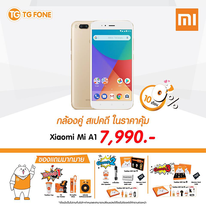 เท่านั้นยังไม่พอ ลูกค้าสามารถผ่อน 0 % 10 เดือน และเลือกรับของแถมมากมายซึ่งเราสามารถเลือกได้เองถึง 3 Group ด้วยกัน เอาเป็นว่าใครที่สนใจสมาร์ทโฟนดีราคาสุดคุ้มแบบนี้ สามารถเป็นเจ้าของได้ที่ TG FONE ทุกสาขาได้เลยนะคะ