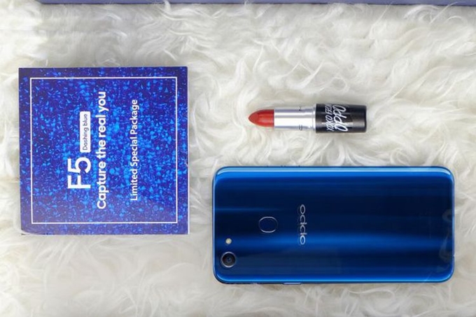 สำหรับ Oppo F5 Dashing Blue สเปคเหมือนเดิมทุกประการ พร้อมหน้าจอ IPS อัตราส่วน 18:9 ขนาด 6 นิ้ว ความละเอียด Full HD+ 2160 x 1080 pixels, กระจก Corning Gorilla Glass 5 และกล้องหน้าความละเอียด 20 ล้านพิกเซล