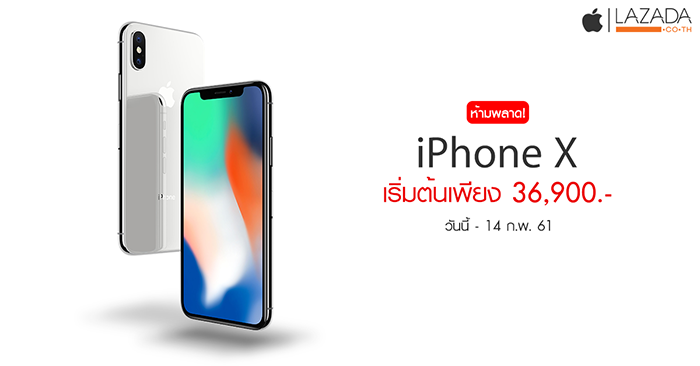 ห้ามพลาด! iPhone X ลดราคาอย่างแรง เริ่มต้นเพียง 36,900 บาท วันนี้ - 14 ก.พ. 61