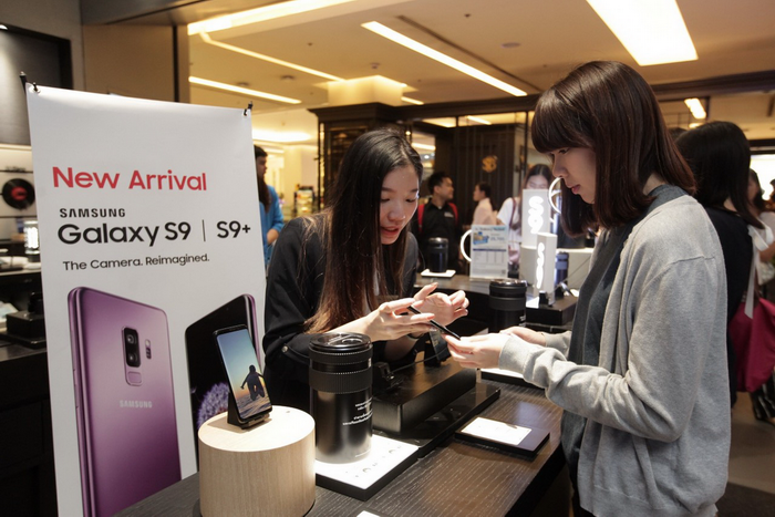 ประเทศไทยปีนี้ได้เป็นกลุ่มประเทศแรกที่เปิดจอง Samsung Galaxy S9 และ Samsung Galaxy S9+ พร้อมรับเครื่องก่อนใคร บรรยากาศการรับเครื่องวันแรกในประเทศไทยเป็นไปอย่างคึกคัก โดย ซัมซุง จัดเตรียมโซนจำลอง "Dual Lighting in You" ให้ผู้บริโภคทดลองสินค้าได้ทันที เพื่อทดสอบประสิทธิภาพของกล้องสมาร์ทโฟนรุ่นใหม่ ทั้งในที่แสงน้อยและที่แสงจ้า โดยผู้บริโภคชาวไทยที่จองและรับเครื่องในวันแรกกลุ่มนี้ ถือเป็นลูกค้ากลุ่มแรกๆ ของโลกที่ได้สัมผัสเครื่องจริงและเป็นเจ้าของก่อนใคร! เป็นภาพบรรยากาศจากร้าน "Samsung Experience Store" ชั้น 3 ศูนย์การค้าสยามพารากอน