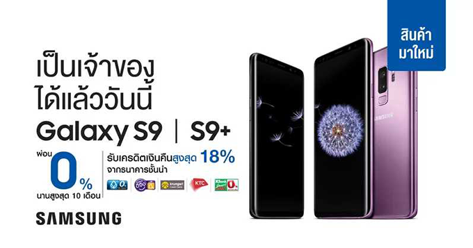 ลาซาด้า พร้อมให้คุณเป็นเจ้าของ Samsung Galaxy S9 และ Galaxy S9+ ได้ง่าย ๆ สามารถเลือกผ่อนชำระ 0% นานสูงสุด 10 เดือน พร้อมรับเครดิตเงินคืนสูงสุด 15% จากธนาคารชั้นนำของประเทศไทย สำหรับใครที่สนใจสั่งซื้อกับ ลาซาด้า สามารถกดสั่งซื้อที่ปุ่ม "ซื้อออนไลน์" ได้เลย