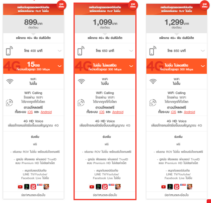 รายละเอียดแพ็กเกจ 4G Hot Deal Non-Stop