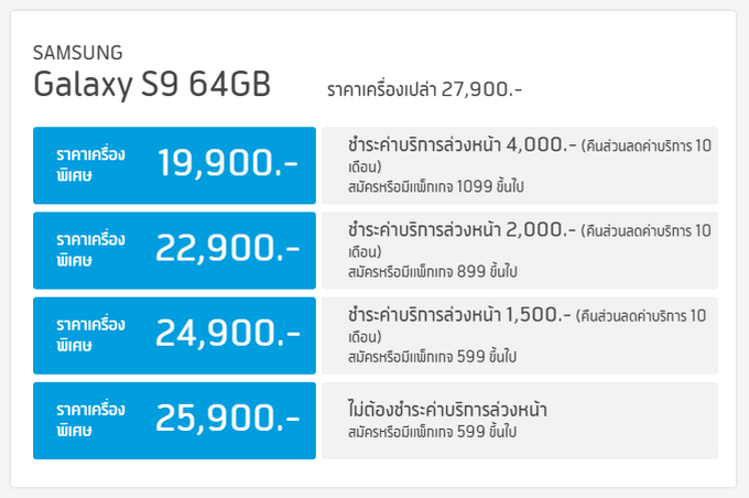 - Samsung Galaxy S9 ราคา 27,900 บาท