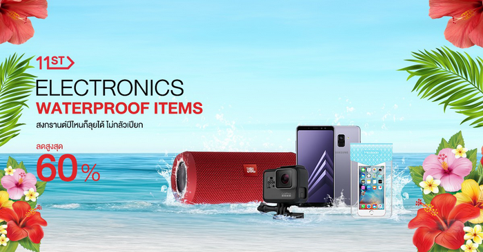 หากใครกำลังมองหาแก็ดเจ็ตกันน้ำแบบไม่ต้องกลัวเปียกสำหรับการท่องเที่ยวตะลุยสงกรานต์ 11street ชวนมาช้อปสินค้าอิเล็กทรอนิกส์แบบวอเตอร์พรูฟจากแบรนด์ชั้นนำ อาทิ Samsung, Xiaomi, GoPro และ JBL กับสินค้ายอดฮิตที่มีให้เลือกหลากหลายรุ่นที่นำมาลดสูงสุดถึง 60% ในโปรโมชั่น "Electronics Waterproof Items" ทั้งสมาร์ทโฟน กล้องถ่ายภาพใต้น้ำ นาฬิกาสปอร์ต ลำโพงบลูทูธ และสินค้าอีกมายมากที่จะทำให้คุณสนุกสนานในสงกรานต์นี้ได้แบบไม่ต้องกลัวเปียก ช้อปได้ตั้งแต่วันนี้ - 7 เมษายน 2561 สินค้าแนะนำ ได้แก่