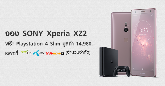 พิเศษไปกว่านั้น! สำหรับใครที่จอง Sony Xperia XZ2 กับทาง เอไอเอส ดีแทค และทรูมูฟ เอช รับฟรี! Play Station 4 Slim 1TB มูลค่า 14,980.- โดยรายละเอียดโปรโมชั่น มีดังนี้