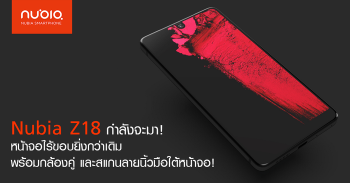 Nubia Z18 กำลังจะมา! หน้าจอไร้ขอบยิ่งกว่าเดิม พร้อมกล้องคู่ และสแกนลายนิ้วมือใต้หน้าจอ!