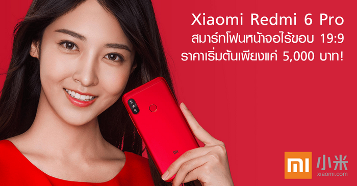 Xiaomi Redmi 6 Pro สมาร์ทโฟนหน้าจอไร้ขอบ 19:9 ราคาเริ่มต้นเพียงแค่ 5,000 บาท!