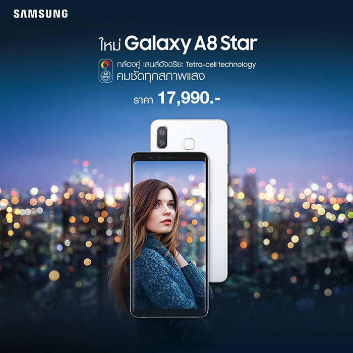 Samsung Galaxy A8 Star มาพร้อมกล้องคู่คุณภาพสูง วางจำหน่ายแล้ววันนี้ ในราคาเพียง 17,990 บาท