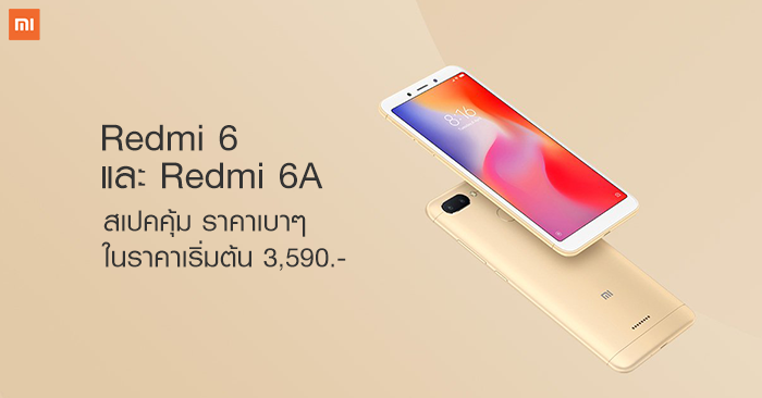 Xiaomi Redmi 6A และ Xiaomi Redmi 6 สมาร์ทโฟนสเปคคุ้ม ราคาเบาๆ เริ่มต้น 3,590 บาทเท่านั้น
