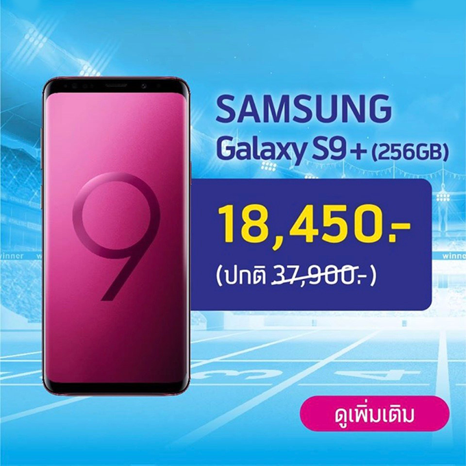 Samsung Galaxy S9+ (256 GB) ลดเหลือ 18,450 บาท* จากราคาปกติ 37,900 บาท