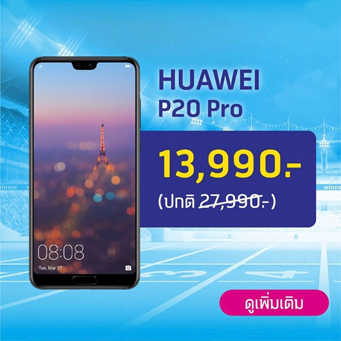 Huawei P20 Pro ลดเหลือ 13,990 บาท* จากราคาปกติ 27,990 บาท