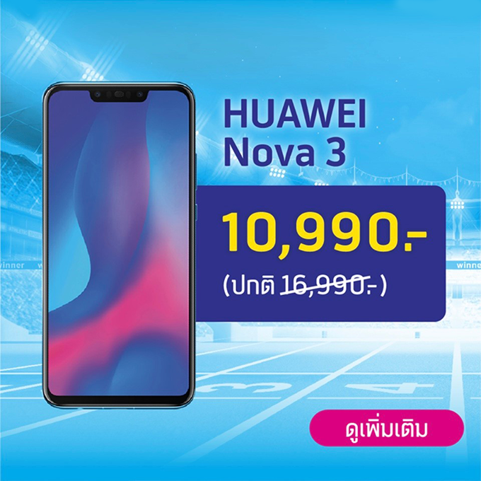 Huawei Nova 3 ลดเหลือ 10,990 บาท* จากราคาปกติ 16,990 บาท