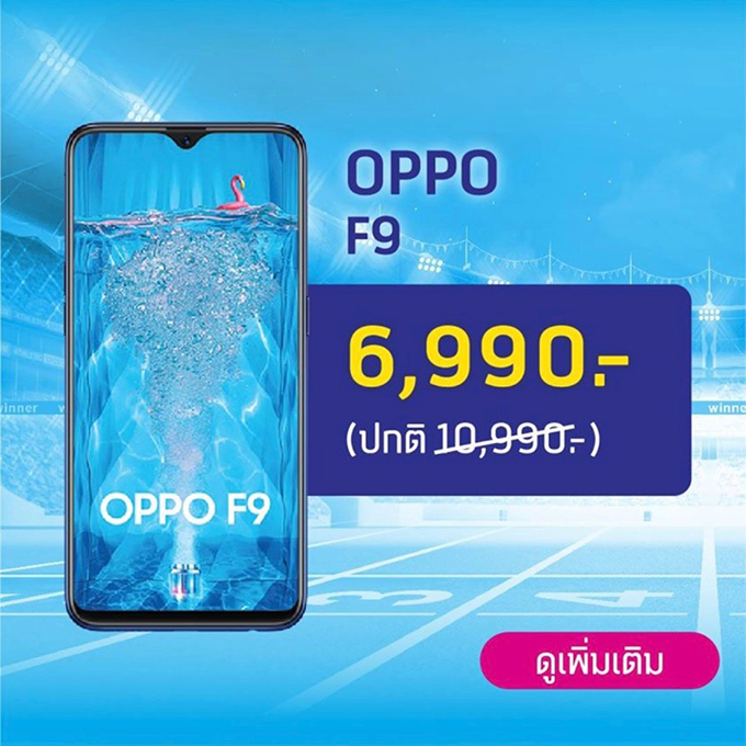 Oppo F9 ลดเหลือ 6,990 บาท* จากราคาปกติ 10,990 บาท