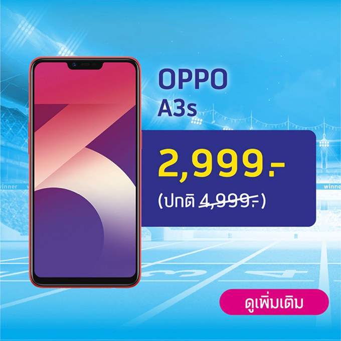 Oppo A3s ลดเหลือ 2,999 บาท* จากราคาปกติ 4,999 บาท