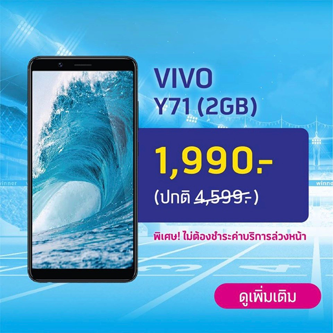 Vivo Y71 (2 GB) ลดเหลือ 1,990 บาท* จากราคาปกติ 4,599 บาท