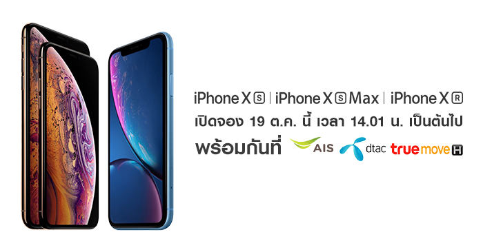 iPhone XS, XS Max และ XR เปิดจอง 19 ต.ค. นี้ พร้อมกันทั้ง เอไอเอส, ดีแทค และทรูมูฟ เอช