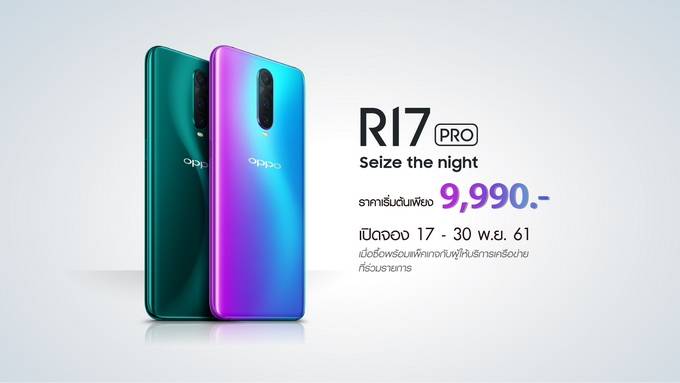 OPPO R17 Pro เปิดจอง 17 - 30 พ.ย. 61 ในราคาเริ่มต้นเพียง 9,990.- ฟรี! ของสมนาคุณ 9,200.-