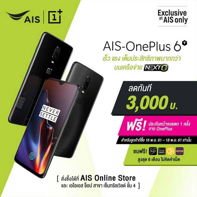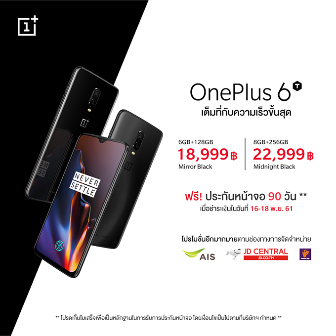 OnePlus 6T สมาร์ทโฟนนักฆ่าเรือธงรุ่นใหม่ เป็นเจ้าของก่อนใครได้ที่ AIS, JD Central และ Power Buy