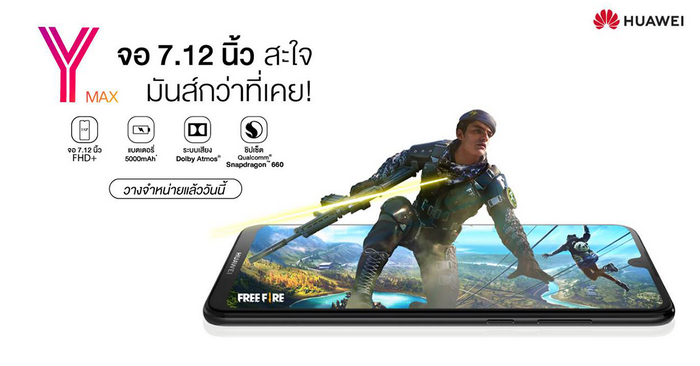 Huawei Y Max สมาร์ทโฟนหน้าจอใหญ่ 7.12 นิ้ว เล่นเกมสะใจ ในราคาสบายกระเป๋า 10,990 บาท