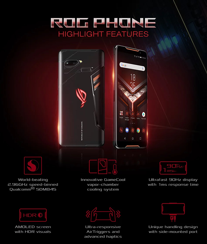 ASUS ROG Phone สมาร์ทโฟนเกมมิ่งดีไซน์โฉบเฉี่ยว อัดแน่นด้วยขุมพลังแห่งเทคโนโลยี ตอบโจทย์สายเกมมิ่งทั้งการเล่นเกมและความบันเทิงอย่างเต็มรูปแบบ ด้วยฟีเจอร์เด่น อาทิ