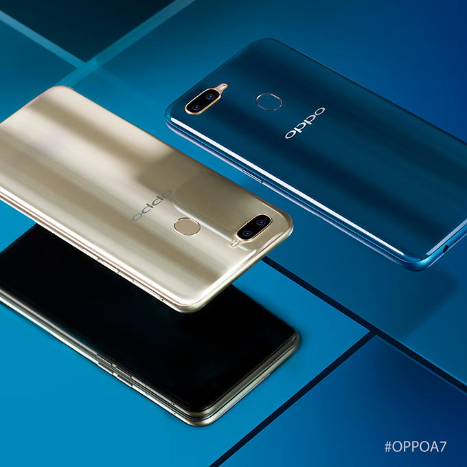 OPPO A7 มาพร้อมกับความจุแบตเตอรี่ 4,230 mAh ตอบโจทย์ทุกไลฟ์สไตล์การใช้งานได้อย่างยาวนาน ไร้กังวลแบตเตอรี่หมดระหว่างวัน กับหน่วยความจำ RAM 4GB และ ROM 64GB สามารถรองรับ MicroSD Card ได้สูงสุดถึง 256GB มอบประสิทธิภาพฟังค์ชั่นการใช้งานของแอปพลิเคชั่นต่าง ๆ ได้อย่างดีเยี่ยม ด้วยชิปเซ็ตประมวลผล Qualcomm Snapdragon 450 ในระบบปฏิบัติการ Android 8.1 ครอบทับด้วย ColorOS 5.2 ที่ฉลาดและมีประสิทธิภาพ ในดีไซน์ฝาหลังที่สุดพรีเมี่ยม กับ 2 สีสันทันสมัยที่มีมาให้เลือก 2 สี ได้แก่ สีทอง Glaring Gold และสีน้ำเงินเข้ม Glaze Blue
